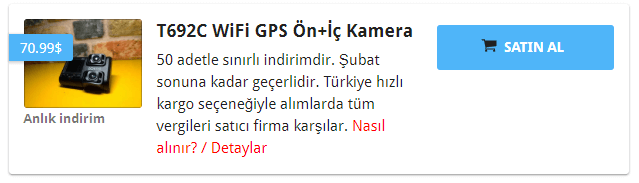 T692C ön+iç araç kamerası 79.59$. İhtiyacınız olabilecek tüm link ve kuponlar için;