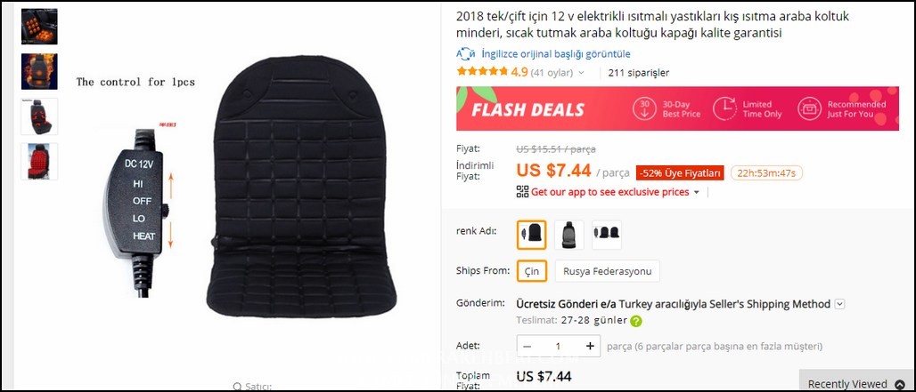 Tekli Isıtıcılı Koltuk Minderi - 7.44$