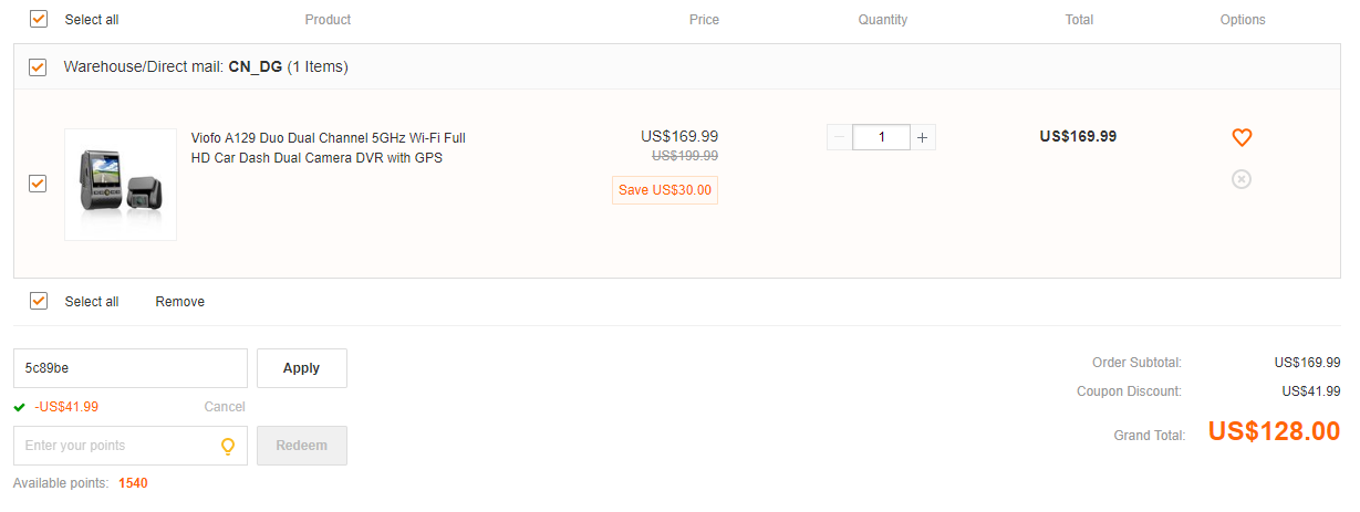 Bu fırsatı kaçırmayın. Hepsiburada'ya göre 64 GB kartta minimum 20 lira, 128 GB kartta minimum 60 lira karınız oluyor. Dresslily güvenilir bir sitedir. Ayrıca Banggood'dan vergisiz olarak Viofo A129 modelini satın alabilirsiniz. Şuana kadarki en dip fiyat.