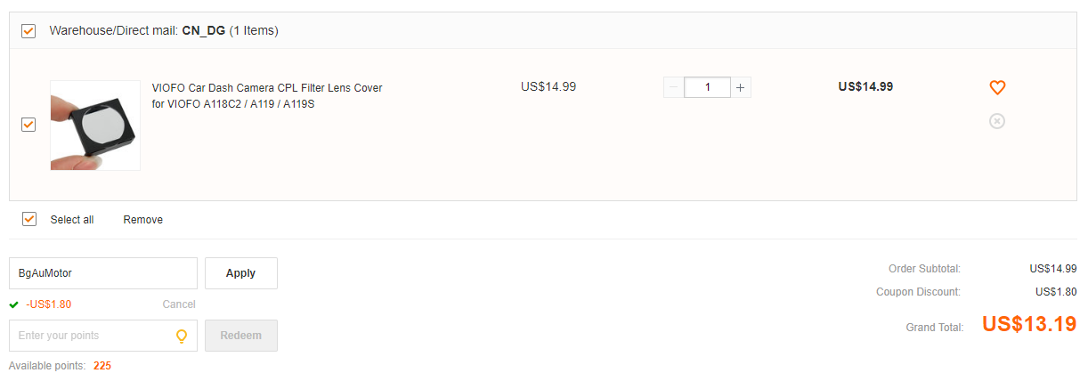 - Banggood "Turkey Direct Mail" kargo seçeneğiyle artık tüm vergileri üstleniyor. Teslim süresi ortalama 12 gün. Vergi ödeme çekincesi olmadan "Turkey Direct Mail" kargo seçeneğiyle 128 dolara Viofo A129 çift kameralı araç kamerasının GPS'li modelini satın alabilirsiniz. Bu zamana kadar yapılan en iyi indirimdir.